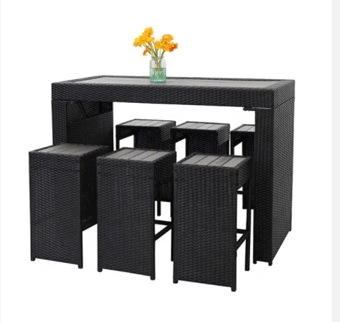 Раттан ткань наружной высокий стол и бар стулья Отдых отель открытый столовой набор Дворик Дворик Раттан столовой набор